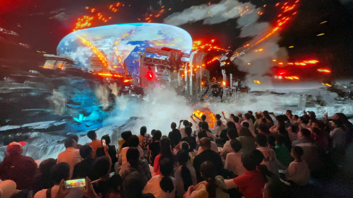在内容与玩法上,元宇宙剧场深度融合文旅IP与在地文化,打造具有持续吸引力的叙事体验。例如,在重庆丰都鬼城定制的《穿越地府》影片,将本地鬼文化与沉浸式科技结合,成为景区的一大亮点。而在众多落地的商圈,则通过科幻主题内容吸引年轻家庭与打卡人群,形成线上线下联动的社交传播效应。影片每2-3个月更新一次,内容涵盖神话、科幻、自然、历史等多类题材,既满足游客的多元审美,也保障项目的长期活力。