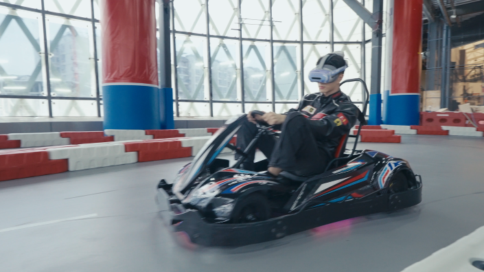 VR卡丁车的核心技术架构依托于高性能的MR/VR设备与自主研发的游戏引擎,实现了高分辨率、低延迟的视觉呈现与流畅的多人协同交互。系统通过精准的定位追踪技术,将真实的卡丁车驾驶与虚拟赛道、动态道具及环境效果无缝连接,创造出既真实又充满想象力的竞速体验。无论是与虚拟BOSS对抗的团队竞技,还是在极地赛道中使用魔法道具干扰对手,抑或是通过色彩覆盖争夺场地的创意玩法,都展现出技术在提升沉浸感、互动性与娱乐多样性方面的突破。这种技术集成不仅保障了体验的流畅与稳定,也为后续内容迭代与场地拓展奠定了基础。