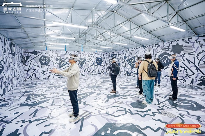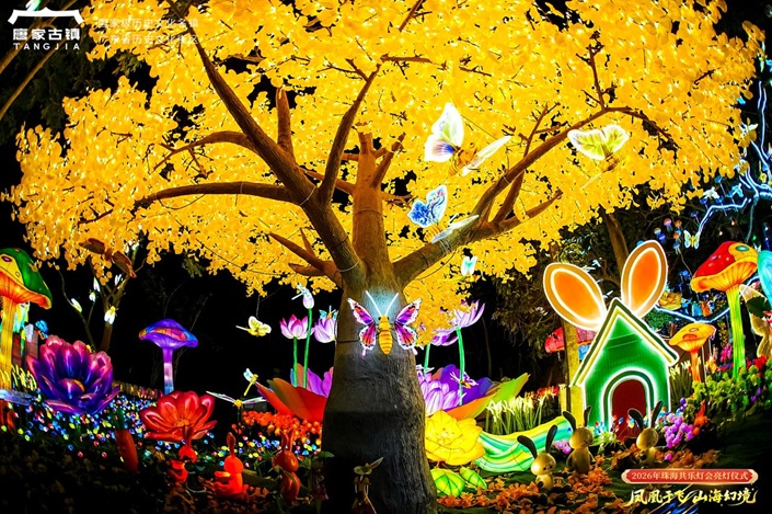 “五、四、三、二、一——亮灯!”2025年12月30日晚,随着倒计时落下,珠海唐家古镇共乐园内万千灯彩同步绽放。白泽神兽昂首吐息,九尾狐光影流转,巨型凤凰灯组自林梢“展翅”,将百年岭南园林化作如梦似幻的“山海幻境”。这场横跨元旦、春节、元宵,持续63天的文旅盛宴,不仅有非遗灯艺的传统雅韵,更有超元力XR无限空间打造的数字体验馆加持,为古镇灯会注入科技新活力,带来古今相映的沉浸体验。